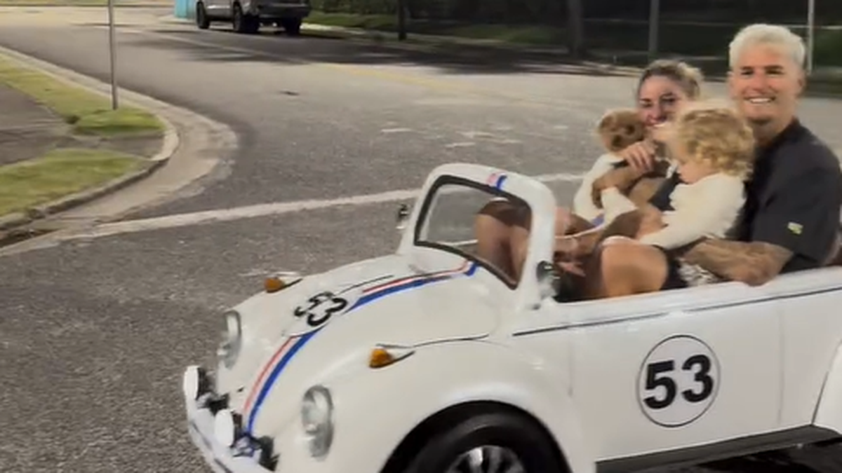 Y fue visto por Matías Viña, compañero de Varela en Flamengo, quien lo filmó mientras el lateral derecho hacía un paseo. En el video se ve a Varela en el pequeño auto junto a su hija, su pareja y la mascota de la familia. “Pasá, pasá”, le dice Viña para ver a su compañero junto a su familia en el coche.