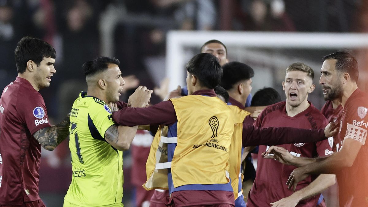 Lanús venció 1-0 a la U de Chile en la revancha de las semifinales de la Copa Sudamericana y accedió a la final, que jugará con Atlético Mineiro. Lanús selló su clasificación a la final de la Copa Sudamericana luego de imponerse 1-0 a la U de Chile en La Fortaleza, con un resultado global de 3-2 a favor del elenco argentino, en un final de partido caliente y en el que los jugadores protagonizaron un escándalo con tumultos, empujones y golpes. Una vez que el árbitro marcó el final del partido y Lanús clasificó a la final, automáticamente varios jugadores de la U de Chile fueron a buscar a Carlos "Cali" Izquierdoz y de a poco el resto de futbolistas se fueron sumando al tumulto, hasta que los ánimos comenzaron a caldearse mucho más y se perdió el control. Lo cierto es que el final del partido fue picante, sobre todo después de un trámite que contó con dos goles anulados -uno por lado- y una polémica mano de Eduardo Salvio en la jugada previa al tanto de Rodrigo Castillo que le dio la clasificación a Lanús y que no fue sancionada por el árbitro. Así, los ánimos estaban caldeados de cara al cierre del encuentro. Mientras los hinchas celebraban el final del partido, los jugadores en el campo de juego comenzaban con los empujones. El arquero del Granate, Nahuel Losada, tomó del cuello a un jugador chileno, mientras que Leandro Fernández era frenado por sus compañeros ante sus intentos de pelearse con los rivales. "Vení, cagón", se vio que decía Leandro Fernández, delantero argentino del conjunto chileno, aunque las cámaras no mostraron hacia quién iba dirigido el mensaje. Afortunadamente, si bien fue un intenso cierre de la partido, la situación pudo haber sido mucho peor y no pasó a mayores y, tras unos minutos de tensión, los chilenos se retiraron y los argentinos se dedicaron a festejar. La final de la Copa Sudamericana será Lanús ante Atlético Mineiro, quién eliminó en semifinales a Independiente del Valle, y se llevará a cabo el próximo 22 de noviembre en el estadio Defensores del Chaco de Asunción, Paraguay.